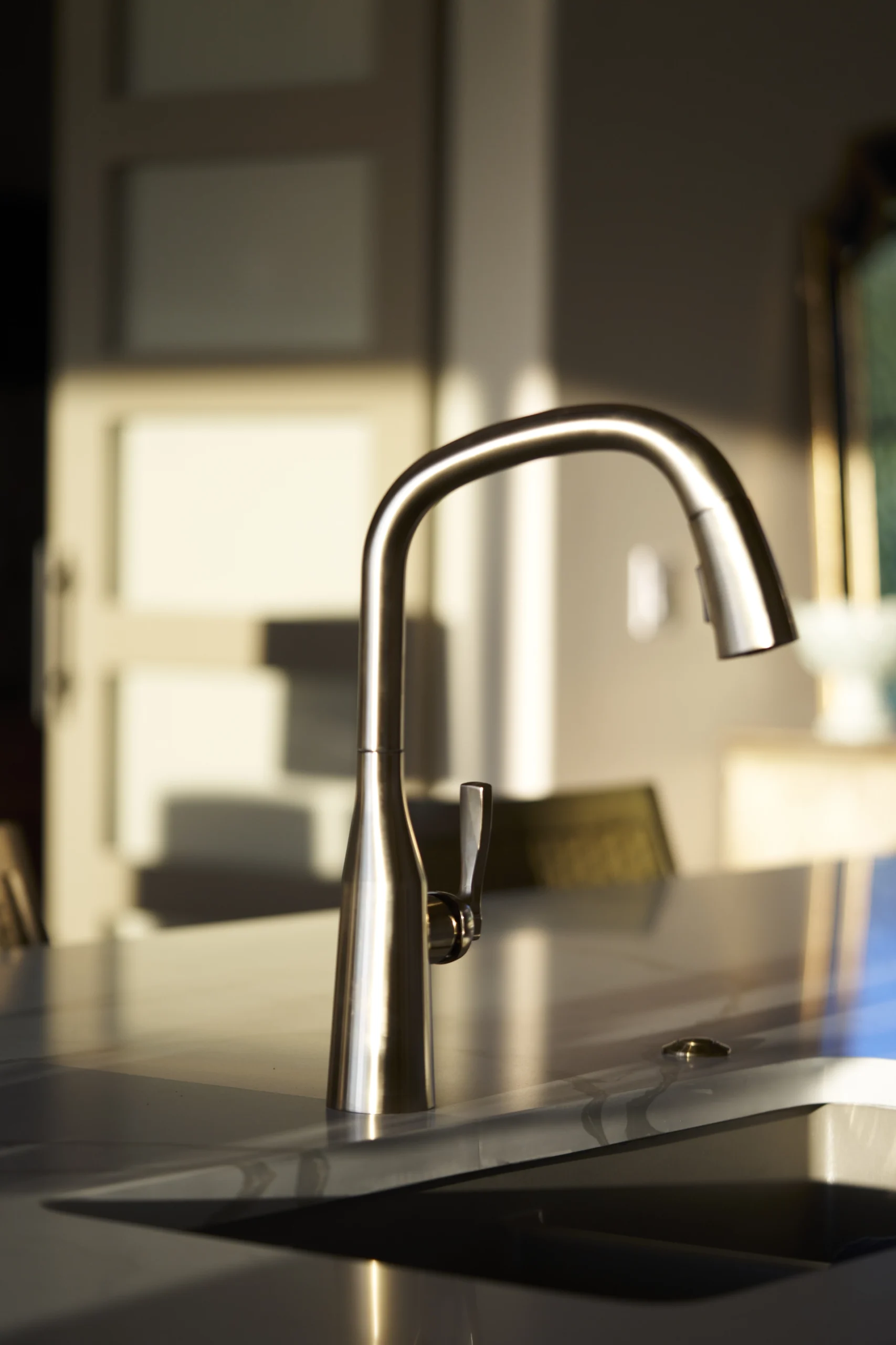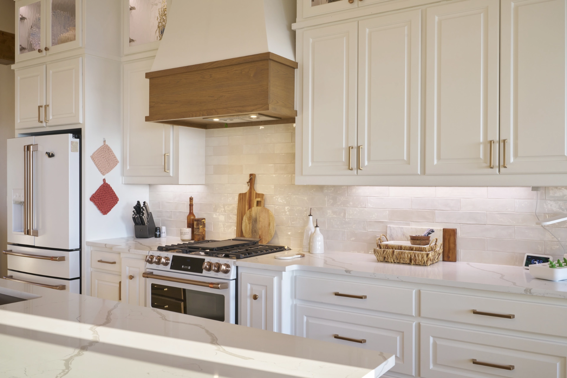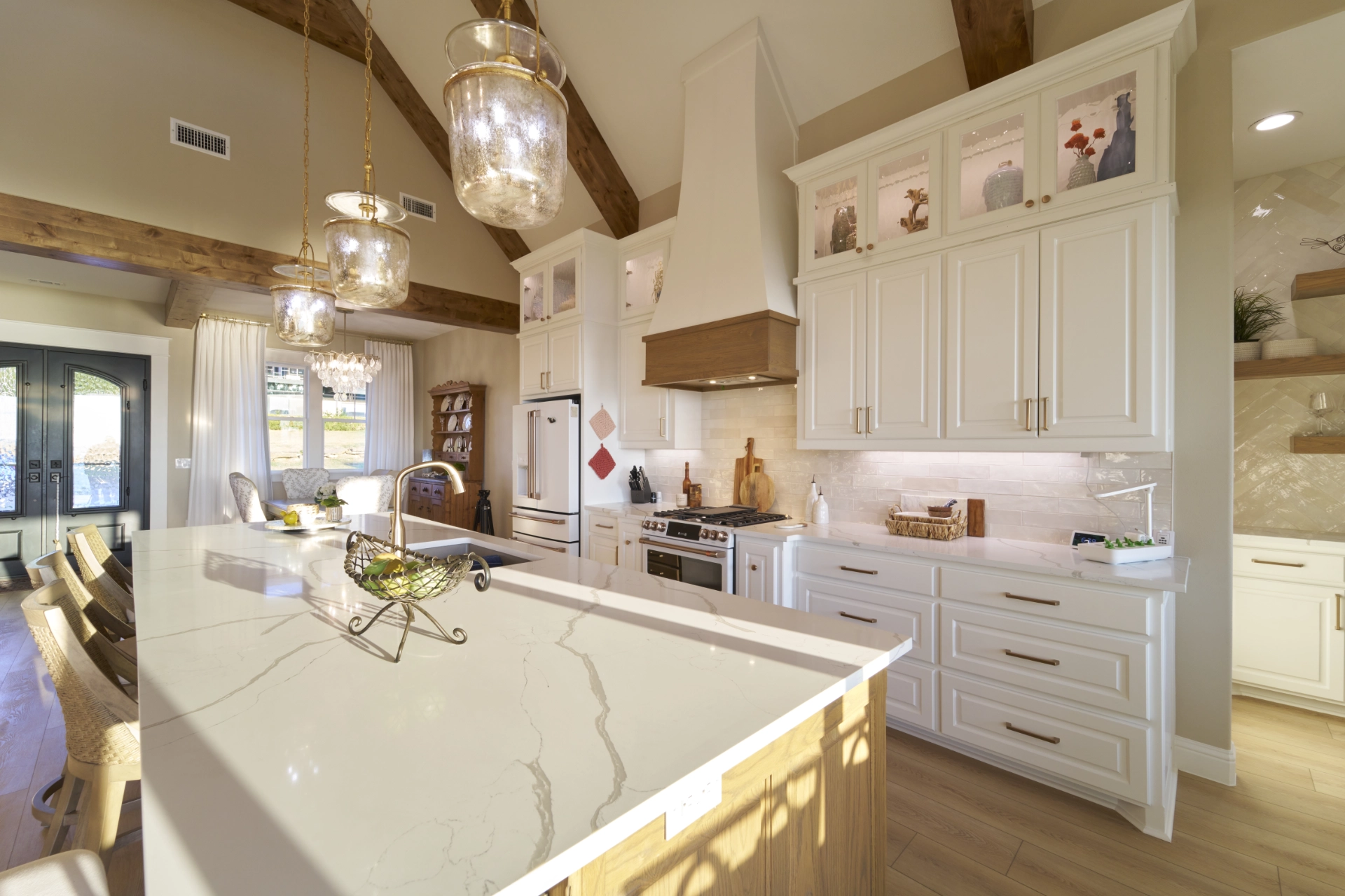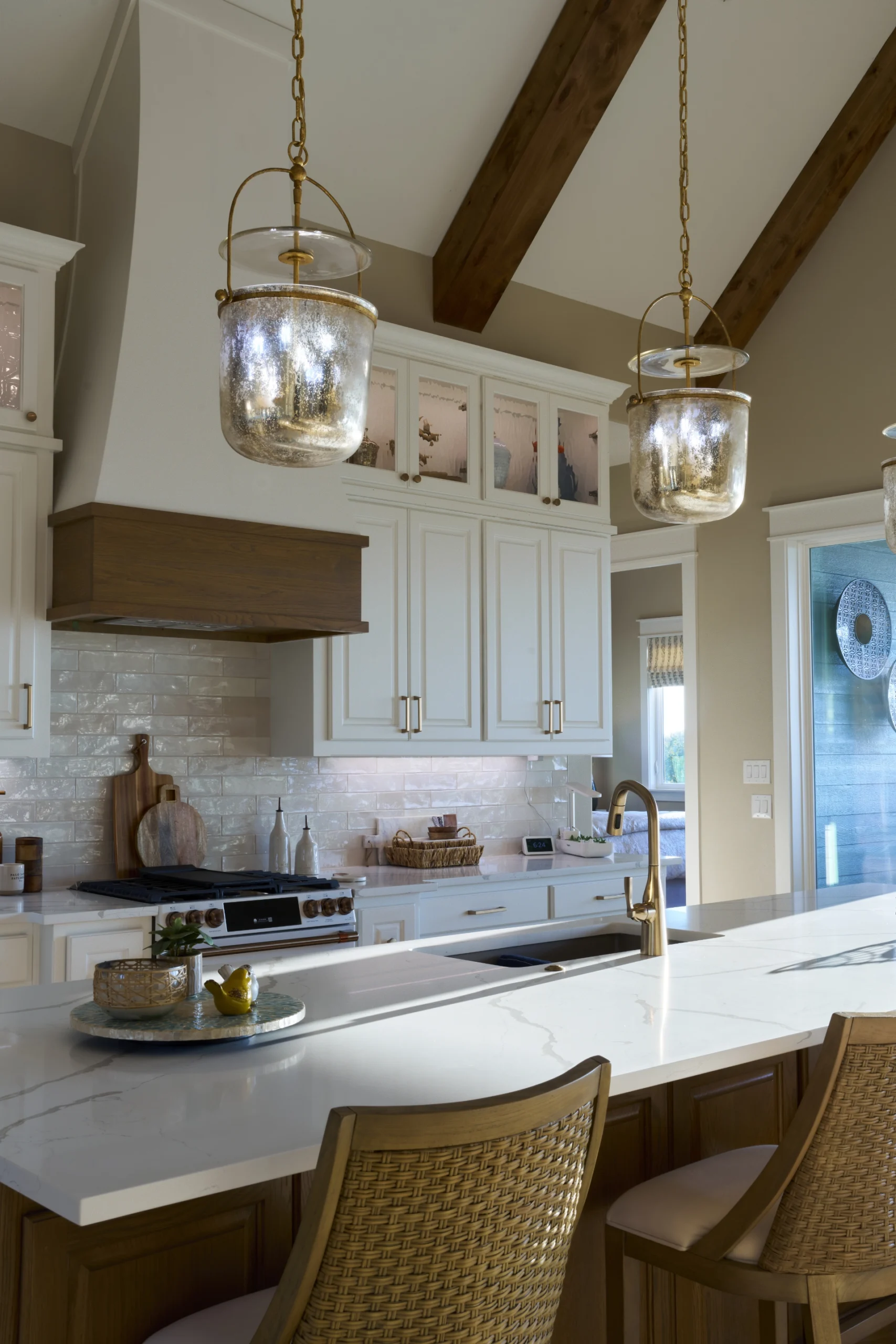 Across the living, dining, and kitchen areas, I focused on simple, comfortable layouts that support slow mornings, quiet evenings, and easy weekends with family. Natural light and edited decor highlight the blues throughout the home, creating a soothing, lake‑inspired backdrop that feels timeless and inviting.