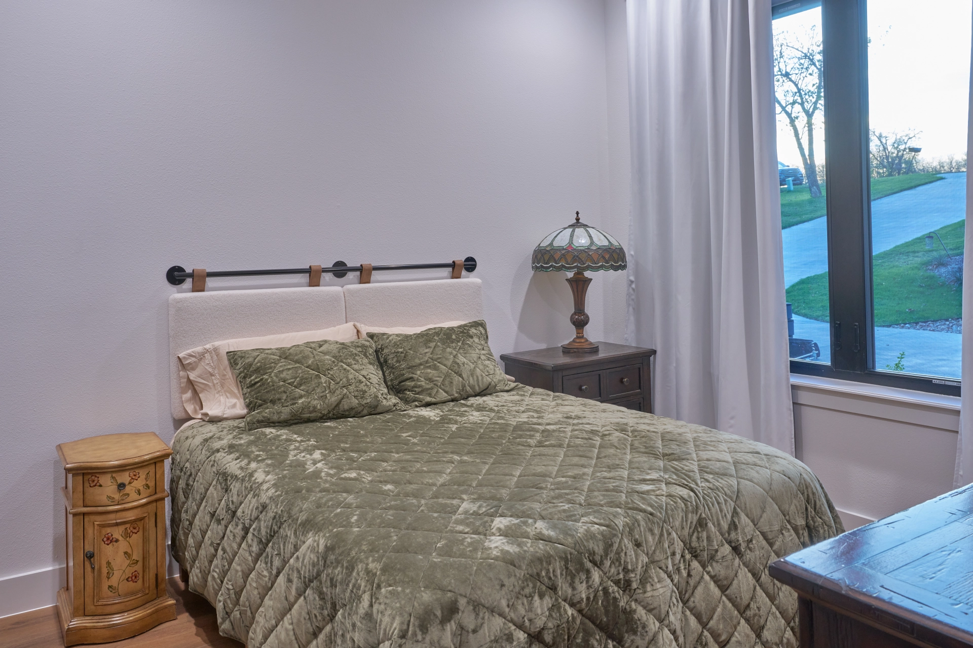 Soft neutrals, layered around the lake.